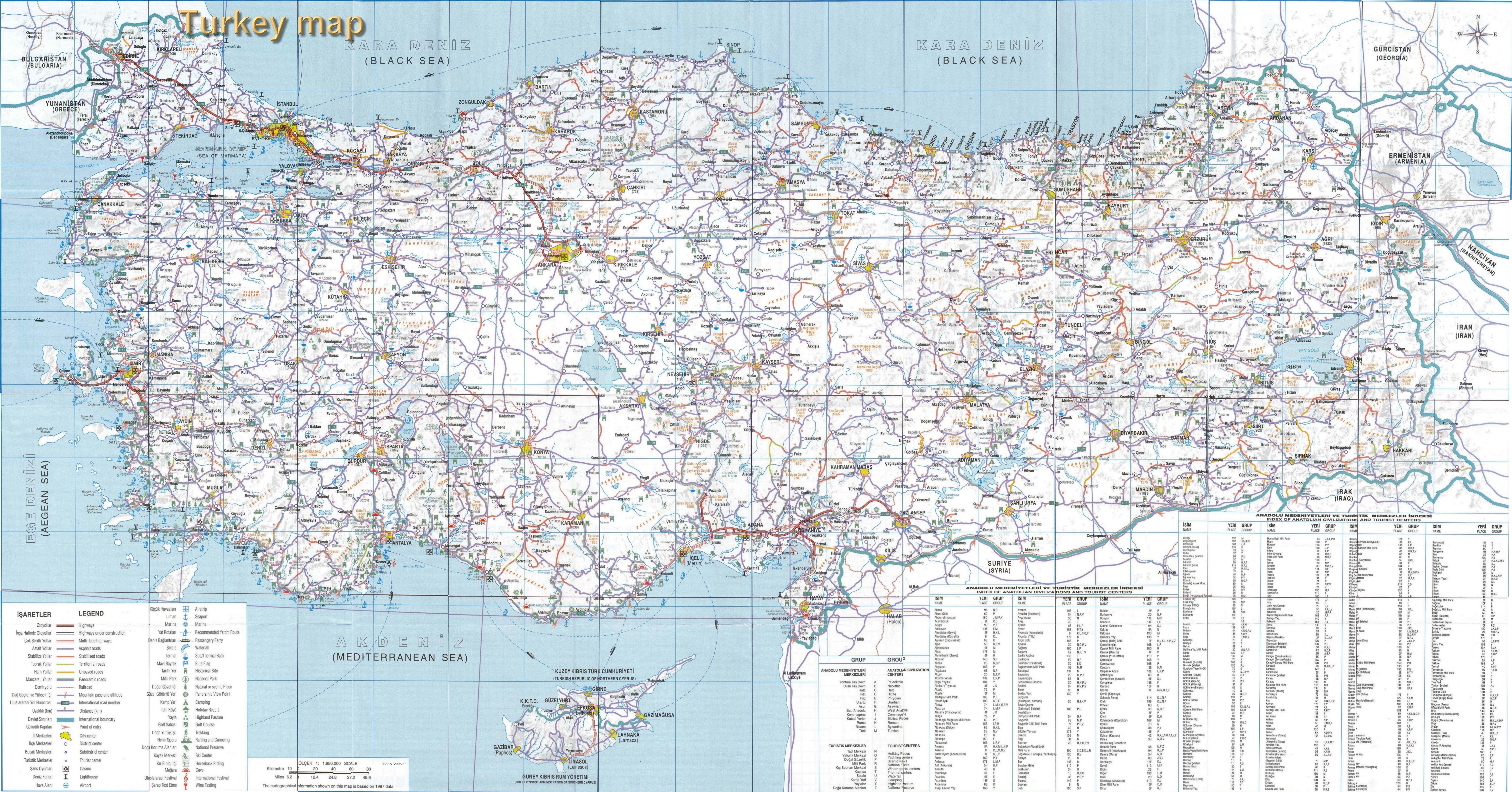 نقشه های زیر حاوی مسافت بین شهر ها و راهنمای مناطق دیدنی ترکیه نیز هست که میتونه در محاسبه مسیر سفر و میزان سوخت مورد نیاز کمکتون کنه .