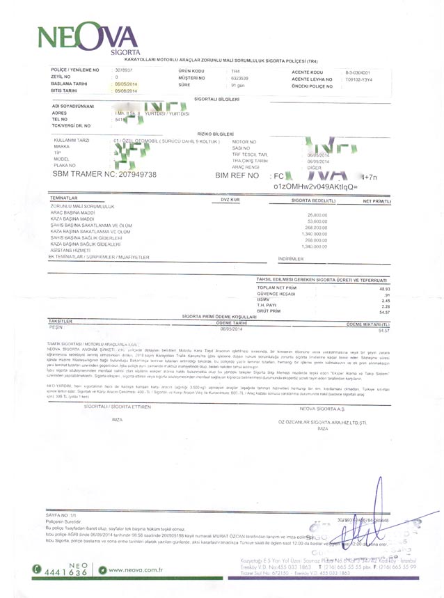 اکثر دوستان در مورد بیمه سوالات زیادی مطرح میکنن . در ادامه مطالب یک نمونه از بیمه ترکیه (سه ماهه) آورده شده . جهت اطلاع دوستان ، بیمه در مسافرت زمینی با خودرو شخصی به ترکیه اجباری هست و جهت اطلاعات تکمیلی میتونین به اینجا مراجعه بفرمائید .